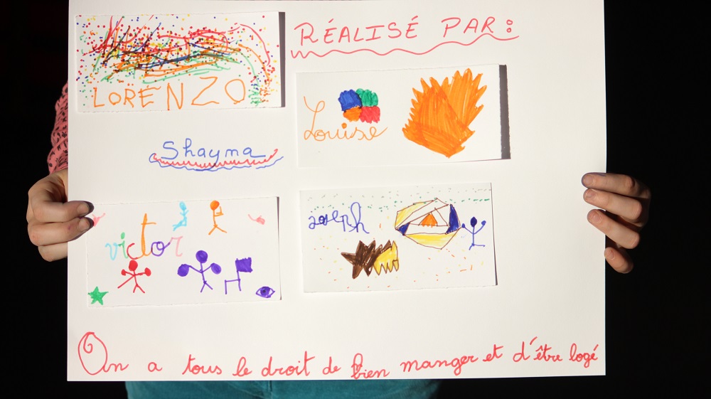 Expressions libres autour des Droits de l’Enfant avec comme support des affiches de l'UNICEF.